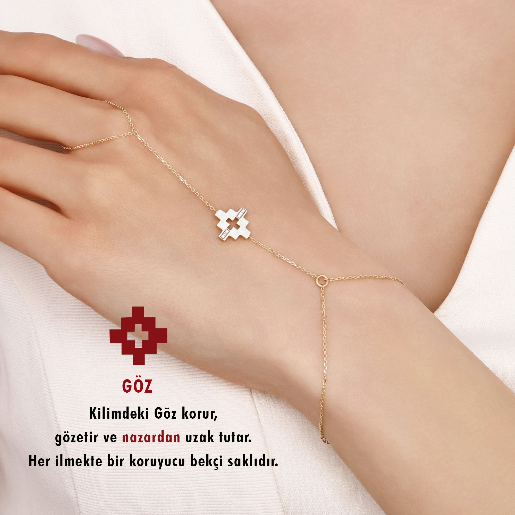 This collection, rooted in the thousands of years old carpet and kilim culture of Anatolia, brings the prayers woven by ancestors back to life. Each motif is an intention: hands on hips symbolize fertility and abundance; ram’s horn represents strength and determination; tree of life represents longevity and a journey full of wisdom… Star motifs represent hope and direction; waterway represents the fertile flow of life.